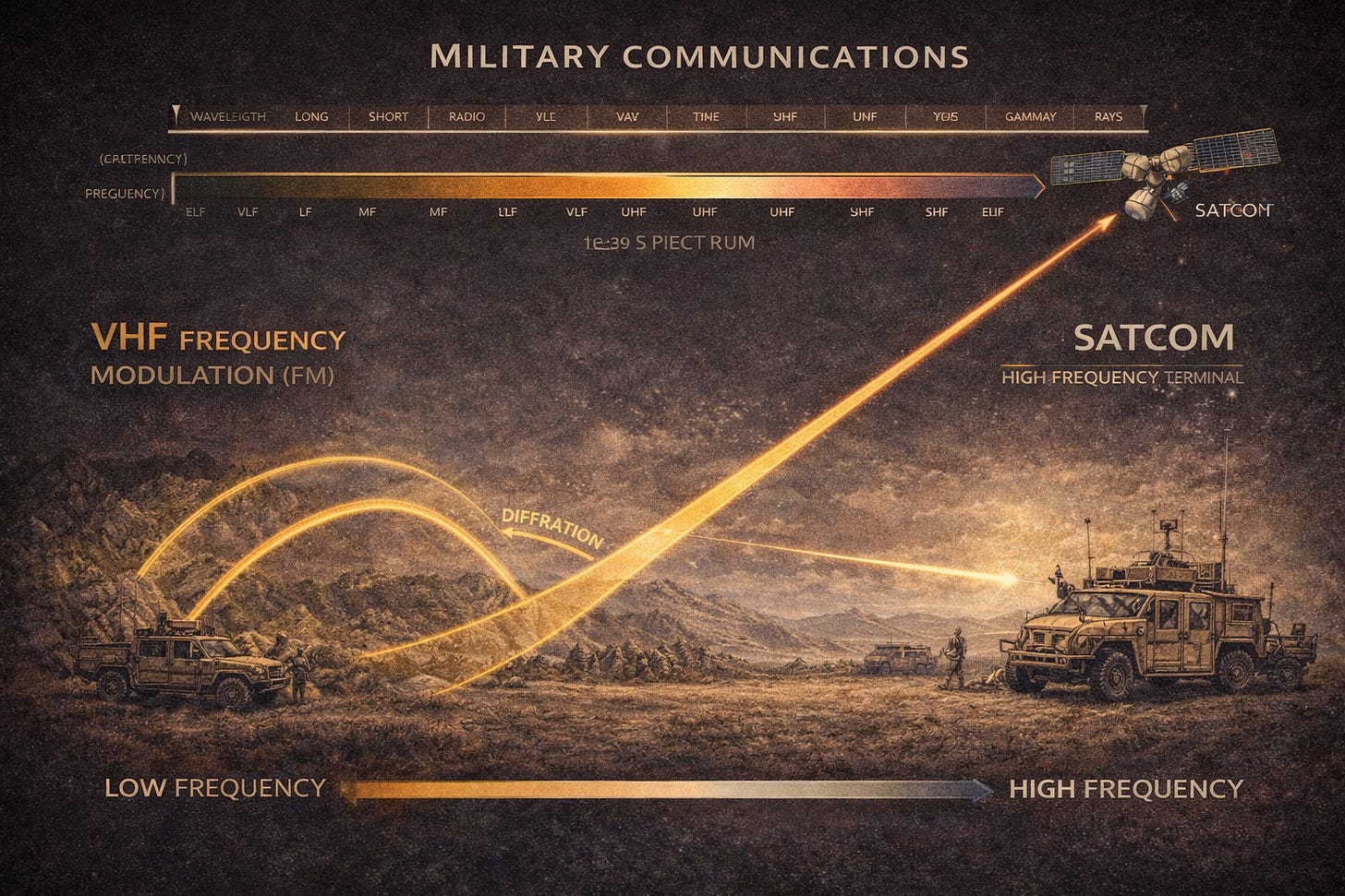 All military communications ride the electromagnetic spectrum. Frequency determines how signals propagate, how much information they carry, and how they fail.